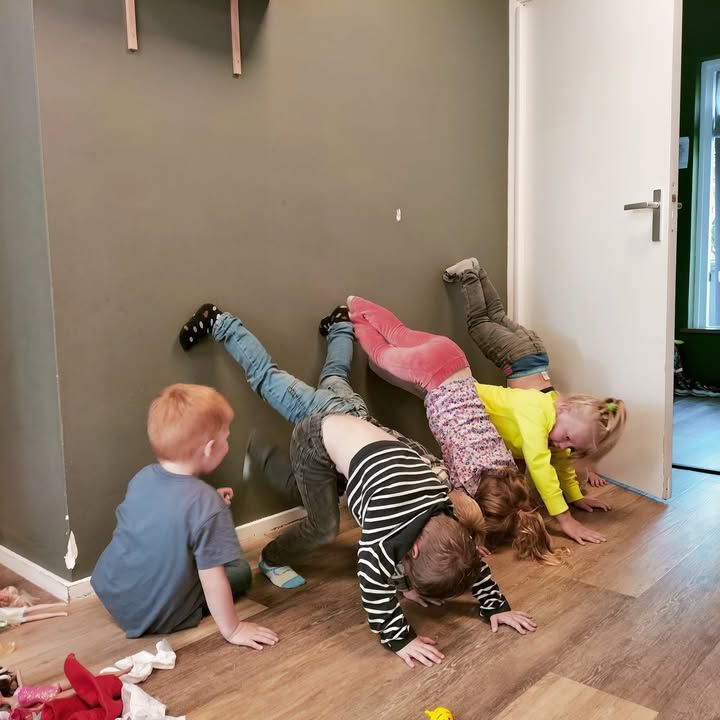Een mooi momentje tijdens de BSO: wie kan er handstand tegen de muur. Een tien jarige zetten zichzelf netjes in een handstand. De vier jarigen keken goed toe. Dat kunnen wij ook: hoppa op een rijtje staan ze allemaal handstand te doen. Prachtig hoe ze elkaar stimuleren en zelf bedenken hoe ze het het beste aan kunnen pakken 😃🥰 #genieten #afwisseling #verbinden #beleven #samen #ervaring #eigentempo #ontdekken #kinderopvang